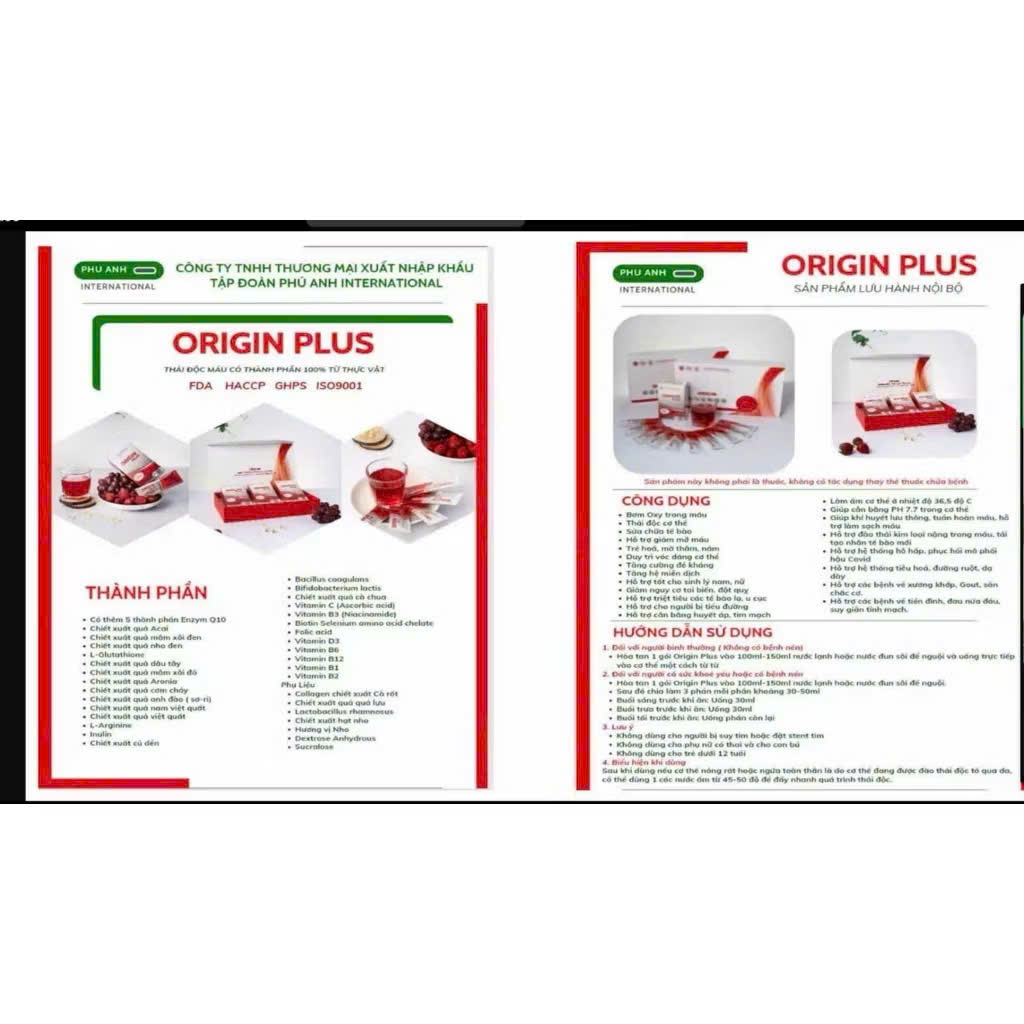 - Tên sản phẩm: Bột uống Origin Plus Chăm sóc sức khỏe toàn diện